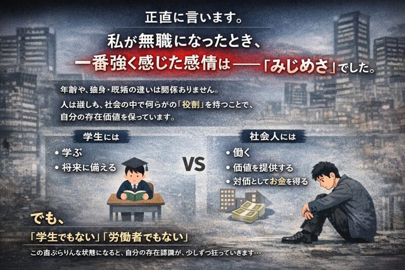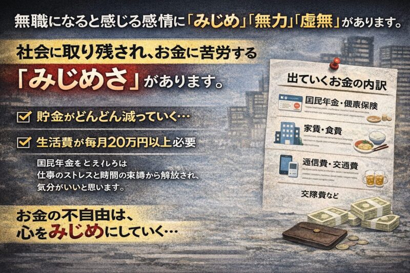 無職になると感じる感情に「みじめ」「無力」「虚無」があります。