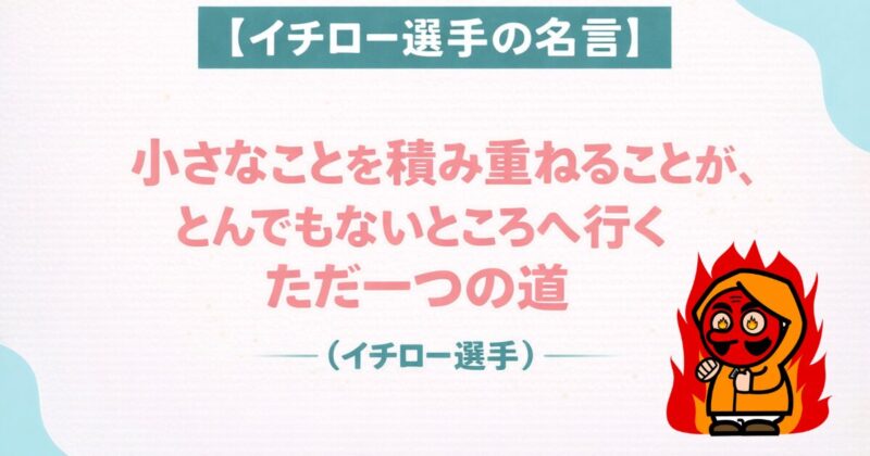 好きな言葉は「小さなことを積み重ねることが、とんでもないところへ行くただ一つの道」(イチロー選手)。